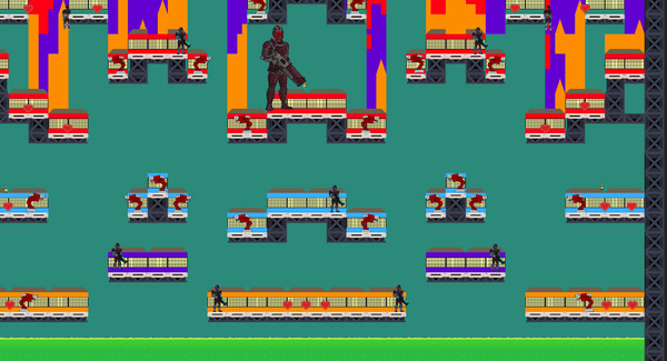 The game is set in a futuristic, sci-fi environment where the player must run, jump, dodge traps, and shoot their way through countless enemies and bosses.