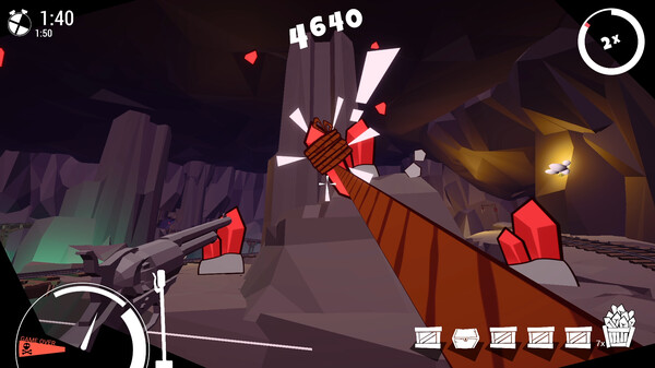 In the game, you do bang bang to anything that moves and pull everything of value, all while riding a fast-moving mining cart through various handcrafted levels.