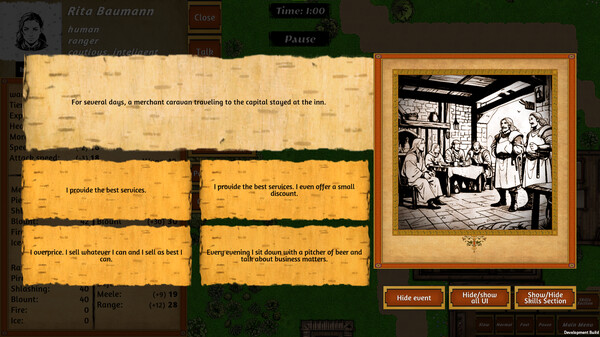 Conduct negotiations with visiting clients and guests. Someone caught your attention? Offer him a job! Maybe you want to have a drink with someone else, play dice or just talk? As long as you don't irritate with your pushiness, your customers will be happy to exchange a few words.