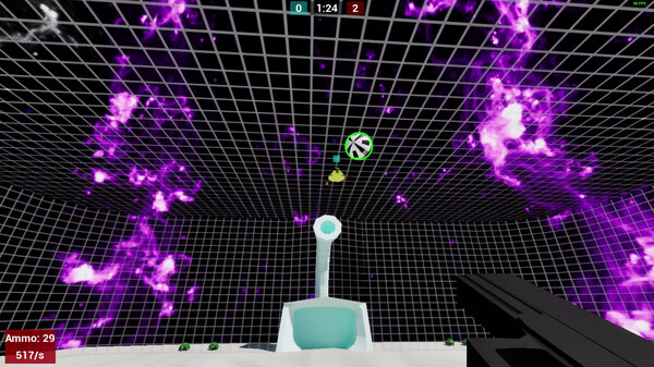 For the default game mode, you are given 9 bullets for your pistol. You can shoot either 1 or 3 bullets at a time depending on what you need. Your gun only reloads while on the ground but aerial movement will let you hit the ball before your opponents. This can allow more skilled players to have an advantage over new players.The Field: