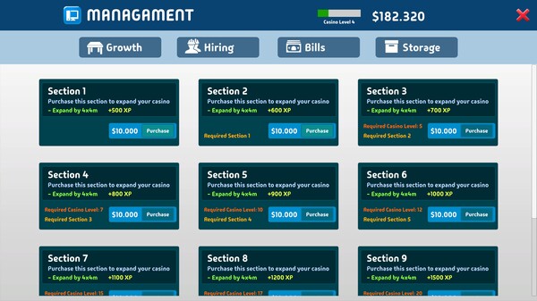 Build and manage your dream casino on a island! In this exciting and immersive simulation game, use your skills to keep your customers happy and create the most prestigious casino on the island.
