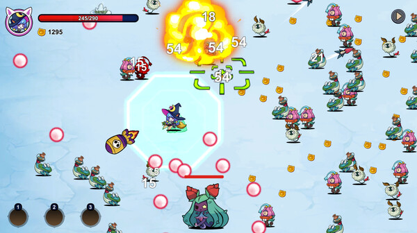 Once upon a time, there was a planet called Meow Meow, where the inhabitants, the Meow Meows, loved to play a game called Monopoly. However, a witch named Lele always rolled a one on the dice, so she always lost. Anger, resentment, jealousy, and a powerful obsession caused the space to warp, and the demonic energy from another time and space also corrupted Lele and the other little animals. Lele also used her newly learned magic to create a chessboard world where it was easier to win when rolling a one. The other Meow Meows in the village were also sealed in the chessboard world by her, and the players will play various Meow Meows to compete with Lele, ultimately helping the Meow Meows to escape this absurd chessboard world...