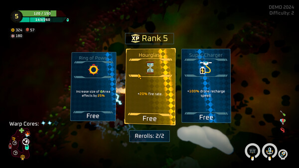 In addition to attaching new modules, Space Scavenger also has Gadgets. These are upgrades that last for the rest of the run and will really define your playstyle. Upgrades such as increased projectile range, larger Area of Effect sizes, increased resistance, improved agility and much more.