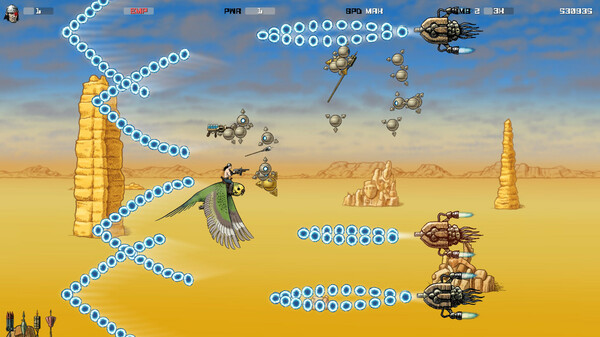 Fly Ramek's genetically-engineered war-bird through five levels of non-stop action, from the irradiated sands of the Dead Zone, to the iron towers of Machine City.