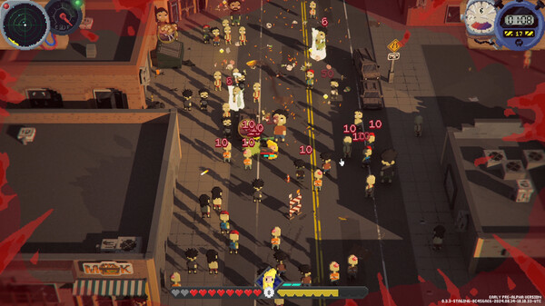 The game has Deadly Days: Roadtrip is an exciting action roguelite, that combines reverse bullet hell gameplay with strategic inventory management.