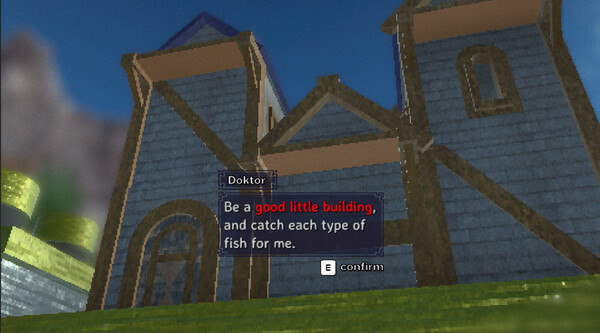 Experience life as a house in this silly adventure game! Play as a building as you roll, jump, and wave-dash across a cozy island. Meet eligible structures, romance them, and experience a bizarre, yet oddly familiar story.. or go fishing instead (though we replaced fish with cars to make more sense)
