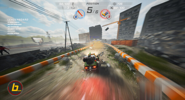 Rush through dystopian wastelands, freezing glaciers, hot sands of the Sahara desert and picturesque islands. Use the weapons you have collected and avoid traps. Send your opponents to the junkyard using the right moment to attack - reflexes count! Lay mines, drop bombs, shoot mortars or rockets. Wield a variety of crazy weapons, such as the scrap blaster to push your opponents into the abyss, or rush straight to the finish line. In this tactical racing game, the decision of how you want to win depends solely on you!
