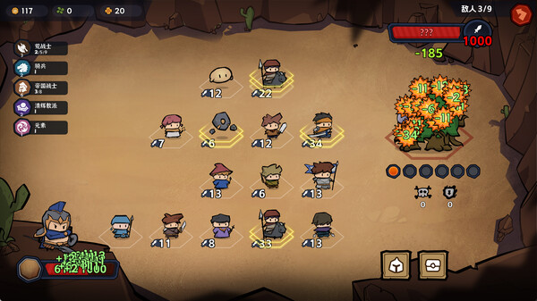 Then, click to start the battle! There are 20 positions on the field, and mercenaries will appear randomly. After appearing, mercenaries will launch one attack against the enemy. The damage caused by mercenaries will be converted into the hero's life.