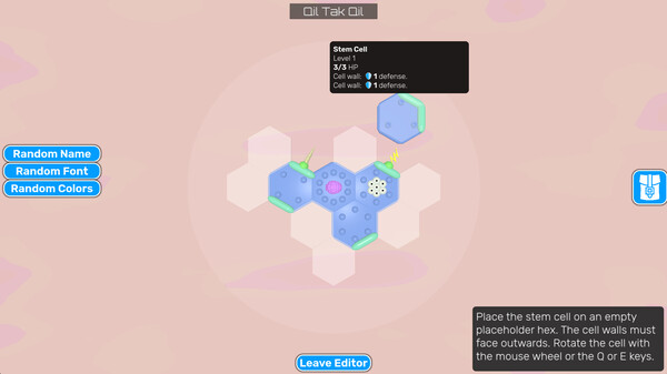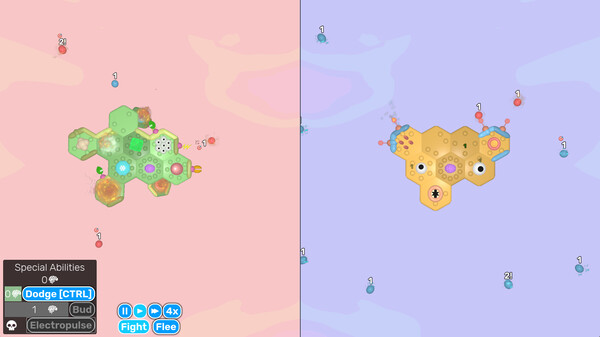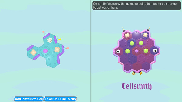 Add new cells to your creature to grow. Cells can be surrounded by cell walls which add defense, but constrain your growth in the future, so you'll need to strategically balance how your creature grows and where your creature is defended.
