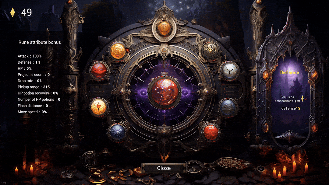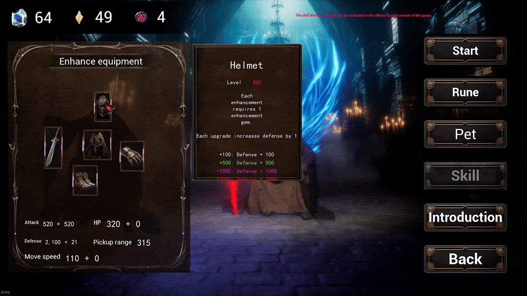 Equipment Enhancement System: As mentioned earlier, our game incorporates traditional RPG progression elements, one of them being the equipment enhancement system. One of the gems that drop is the Equipment Enhancement Gem. It is the key item used to upgrade your equipment and boost your character's attributes.