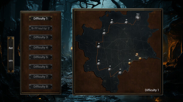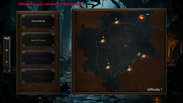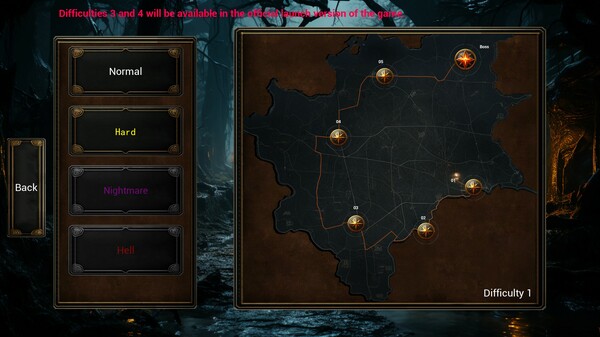 Maps: The game features four tiers of difficulty, each with six unique levels, making for a total of 24 exciting maps to explore. Our map design goes beyond simple reuse of assets. Each difficulty introduces new random events, changes to the terrain, and adjustments to enemy power to keep the challenge fresh and increasingly difficult. So even if you think your stats are enough to make you invincible, you might be in for a rude awakening!