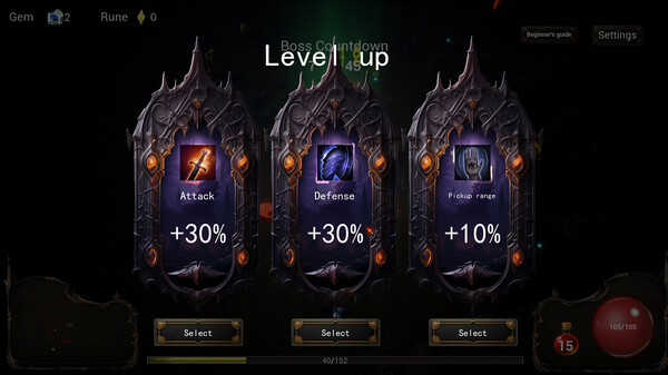 Combat: The combat system is divided into two core elements: the player's auto attacks and skills picked from skill cards, as well as the damage of your pet. These two sources of damage work together to form the core combat mechanics. You will be able to pick up gems during each run that can boost your character's base stats, skill damage, and pet damage for long-term progression. What sets Survivor: Redemption apart from other survivor roguelikes is its extremely high level of difficulty—the combat is truly challenging! So if you are a fan of challenging and rewarding gameplay, our game is perfect for you!
