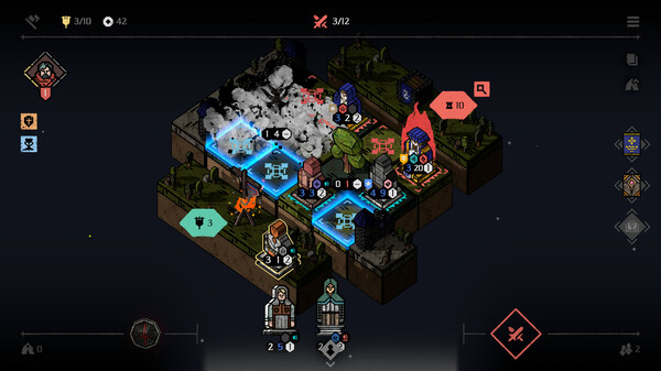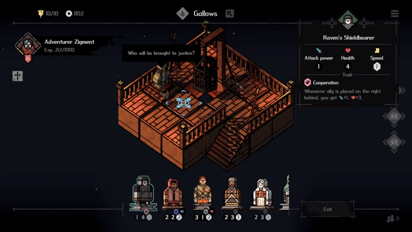 Deploy one mercenary per round to the battlefield and engage in combat. Once combat begins, mercenaries act in sequence based on their speed, so you must find the optimal moves.