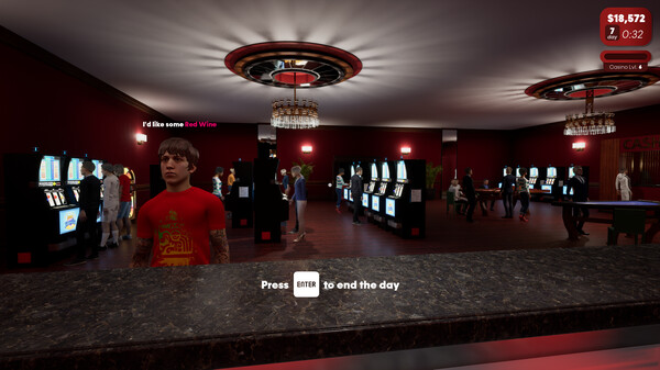 Acquire licenses to unlock new games for your casino. Poker, dice, and roulette games will be available as you expand. Order alcoholic beverages and snacks to keep your guests entertained. Manage expenses, bills, and purchases from an in-game computer.Reinvest your well-earned profit in expanding your business, but don't forget to pay the "elders" who own you.