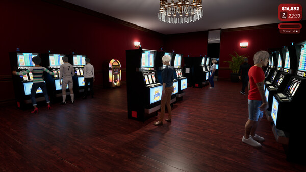 Start by buying a few slot machines and operating as a cashier. Then quickly expand your establishment by renting additional floors or buying new buildings.