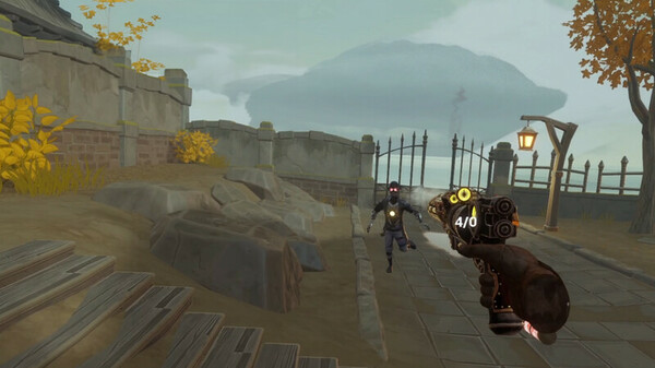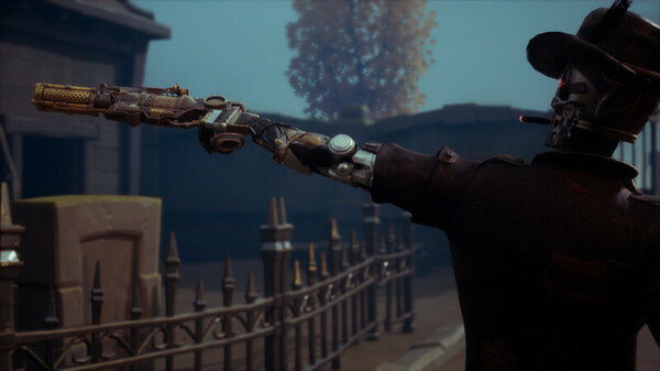 The game has Evilspunk is a VR action game set in a post-apocalyptic steampunk universe. Players control a cowboy character, the last hope of humanity, tasked with defending a mysterious church surrounded by a graveyard from waves of zombies , vampires and dark creatures.