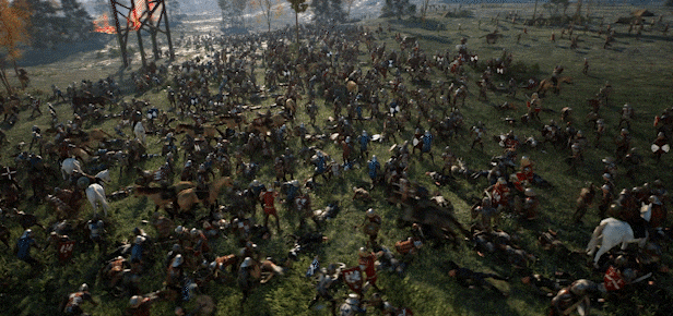 Each battle you engage in runs as a fully real-time simulation with thousands of soldiers fighting at the same time. Every soldier on the battlefield is controlled by a next-gen multi-threaded AI which controls their decision-making, pathfinding, and loyalty. This, combined with a unique procedural animation system, allows Kingmakers to offer an unprecedented level of character and combat fidelity.