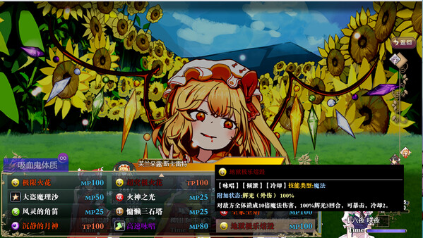 本游戏战斗使用半即时制,伤害使用物理/魔法百分比减伤。敌人一回合能够行动多次,技能以角色物理/魔法数值的倍率为主。