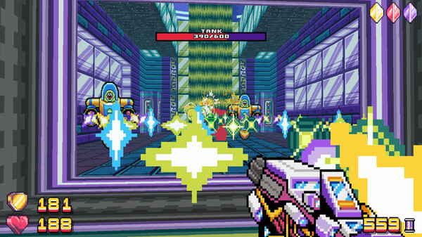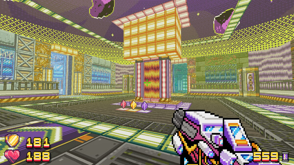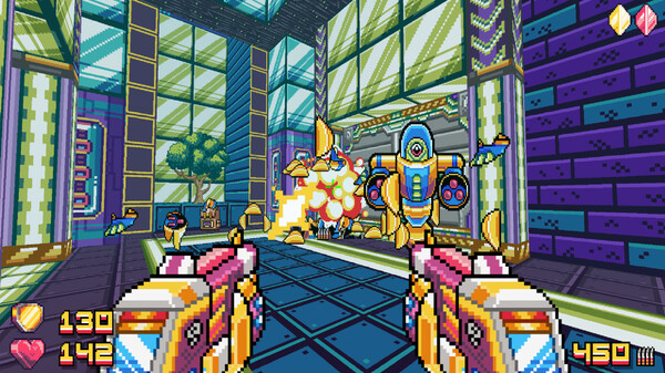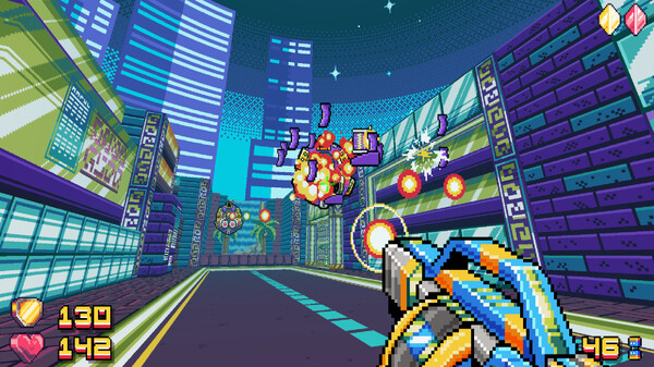 2D Pixel Art Shooter inspired Sci-fi FPS runs on GZDoom. You play as 'Petaka', an angry amnesiac that just wants to kill every one-eyed aliens and annoying drones he encounters while trying to restore his memories by exploring various universes through warp portals.