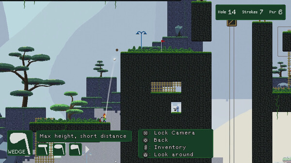 Jump and climb your way through two huge nine-hole maps in this hybrid of golf and 2D action-adventure. The course is full of secrets to discover and challenges to complete in exchange for consumable items that improve your golf game.