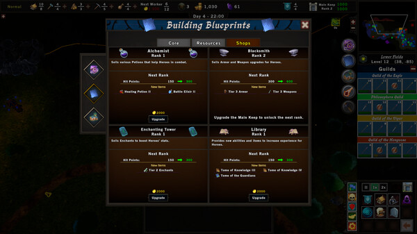 Inspired by Majesty, Heroes of Orn: Darkness is a fantasy base building RTS with a twist - you cannot directly control your units. Build and upgrade your kingdom to gain power and resources. Influence your heroes' decisions and empower them by issuing quests, casting spells, and creating shops.