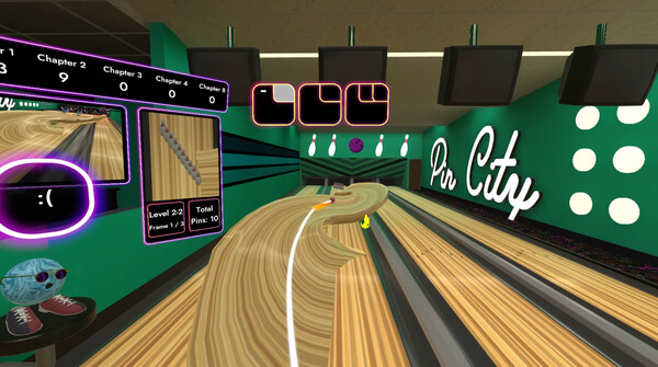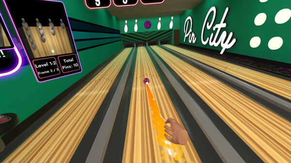 Pin City is a VR bowling game with the spirit of mini-golf! Silly, yet challenging, strive for a perfect game and explore the bowling alley!