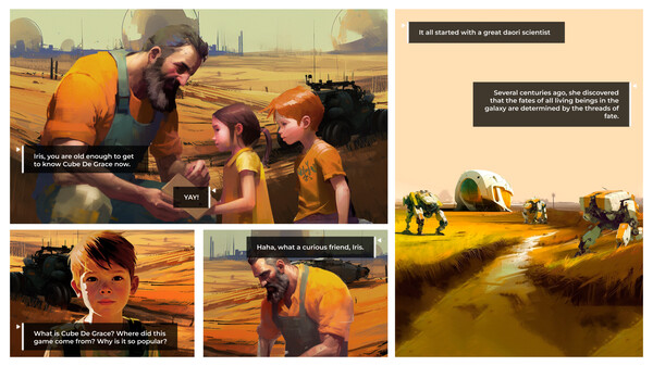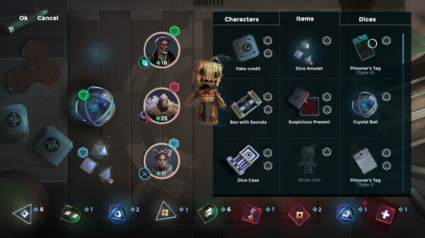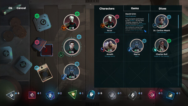 All armed conflicts are in the past since scientists discovered the way to determine people's fates. They have created the corporation responsible for distribution of dice, your elements of fate, for every newborn in the world. With the support of different races they quickly established a strong dictatorship over the galaxy and now they control the fates of one and all. Since then the only possible conflict resolution method is a match of Cube de Grace, the game of fates. The winner has full power over the fate of the loser.