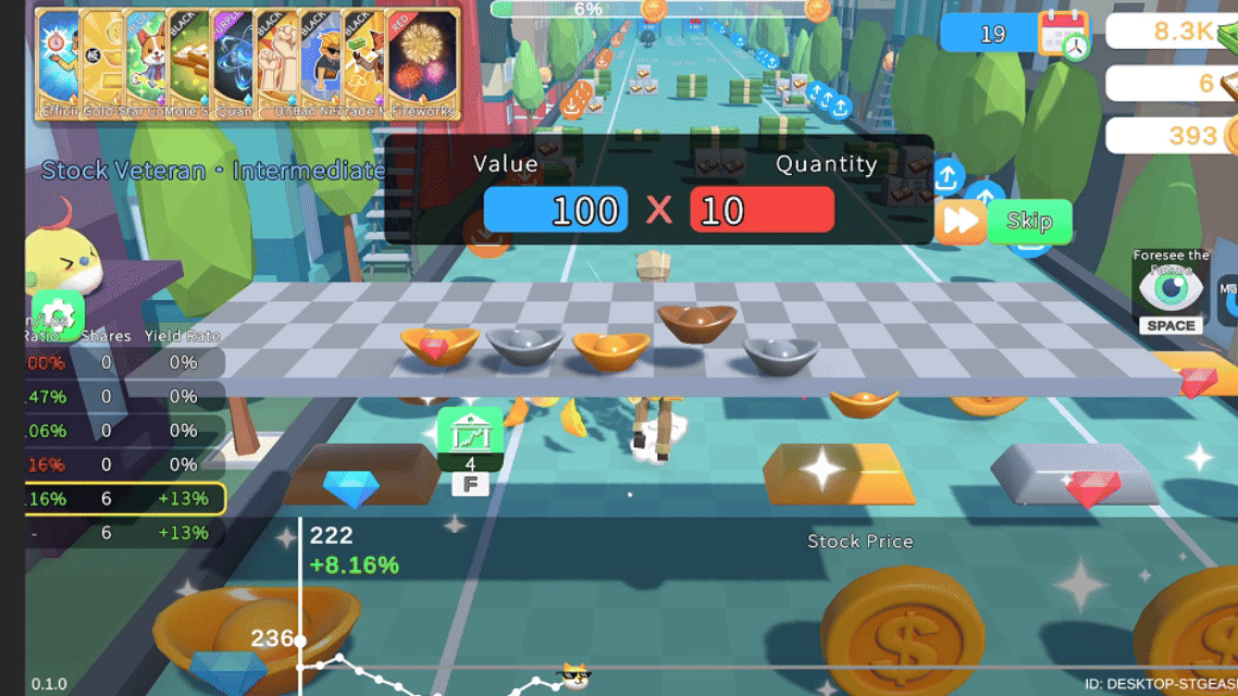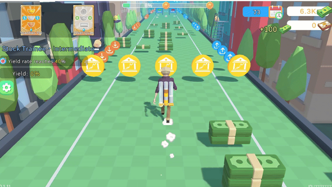 This is a rougelite card game that combines parkour-style with stock speculation. You can experience the journey from a stock trading novice to the most powerful king of stocks! More casual or more strategic? It's your choice!