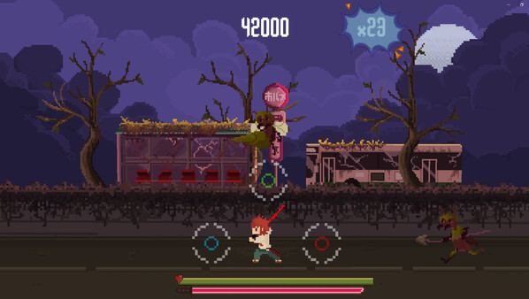 RedDrop is a frantic rhythm and action game with pixel art style, where you fight alongside Ren to rescue his sister, facing waves of demonic enemies!