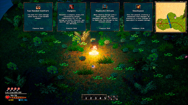 Explore a hand-drawn world full of details, discover secrets and points of interest in a game that rewards exploration, with more than 5 biomes, procedurally generated environments, dungeons, and villages.BUILD YOUR CHARACTER