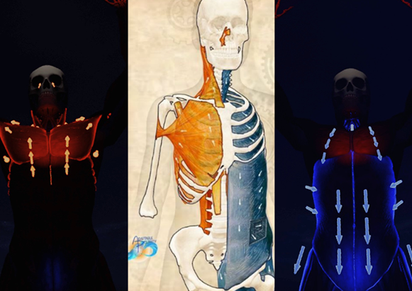 By exploring these muscle chains in VR, guided by emissive flashes, you’ll gain sensory and visual information about how different muscle groups influence your movement. Engage with this experience long enough, and the visuals combined with feelings will carve into your brain, allowing you to communicate with your body in a more advanced language. With consistent practice, you will find inner peace during the storm. Take a breath.