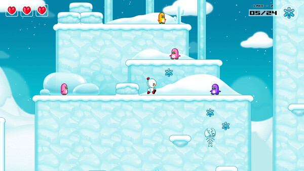 Help Chubby, the fearless little snowman, with saving important artifacts from video game history! Play the first 3 levels for free in this pixel-art homage to classic 2D platformers like Super Mario.