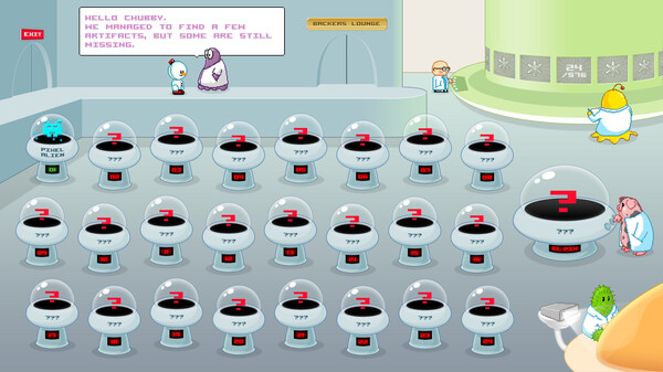 Chaos at the headquarters of the video game organization, UPIXO: the villain, El Pix, has stolen some important and historically valuable artifacts of video game history from the archive.Help Chubby retrieve all the artifacts from El Pix's icy realm of Snowdriftland!