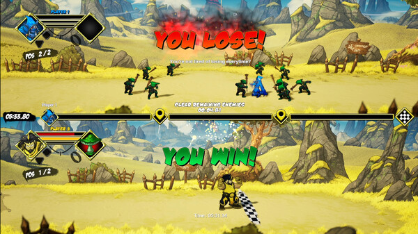 A competitive experience that combines frantic combat action, coop, modern rogue-lite game systems and progression with exciting racing features found in kart racing games. Compete against your friends locally or against players online in a colorful, tongue-in-cheek hero fantasy setting.