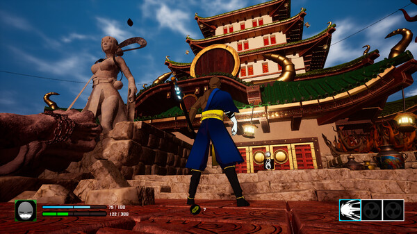 The game has Satori is a Hack & Slash Roguelike game with a third-person camera where a mask allows you to choose between different passive abilities and a ghost arm gives you different special abilities that you must use to fight against yokais and Japanese gods, all with a unique aesthetic. Cell Shading in three colors.