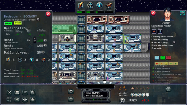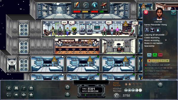 Interstellar Inn is a 2D hotel building and management sim in space.