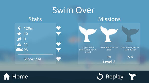Through dozens of unique missions, master the seas to level up your character and unlock new sights. The challenge doesn't stop there - several stats are also tracked for each swim, so you can always increase your high scores.