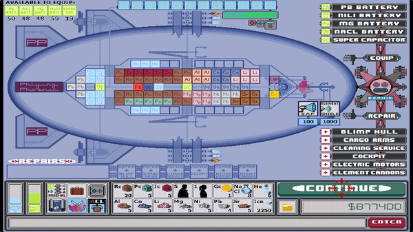Equip and Repair: Equip your Blimp with upgrades and repair it from damage.