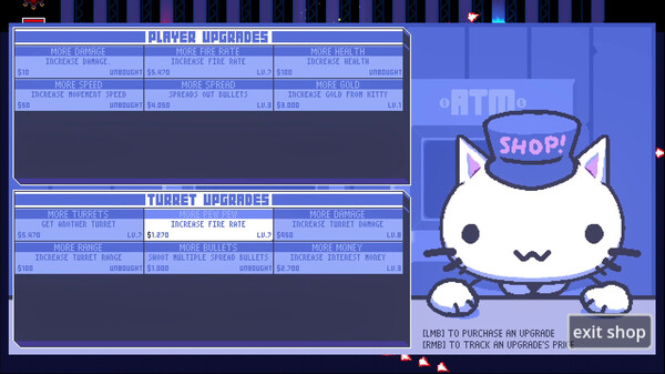 Survive waves of enemies raining bullets on you with the help of your trusty Automatic Turret Machines (ATMs) while you focus on more important priorities: making bank. It's equal parts bullet hell, tower defense, incremental game, and rogue-lite. Coming out later this year in 2024!