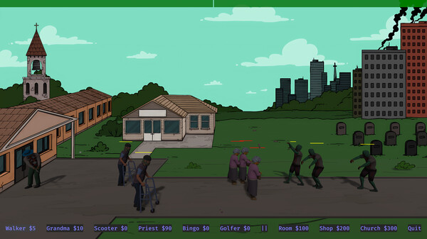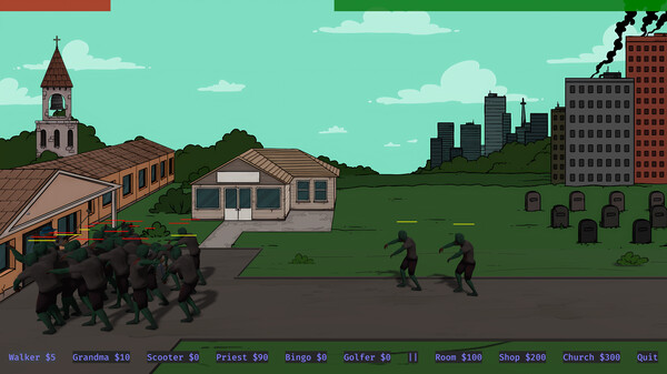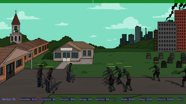 The game has Waves after waves of zombies are attacking a remote Elderly House. No help is coming any time soon. Defend the Elderly House as long as you can using the money earned by killing the zombies. And the money is needed to deploy defending units, which are not directly controlled by the player. You can also spend money to build new houses, enabling new unit types.