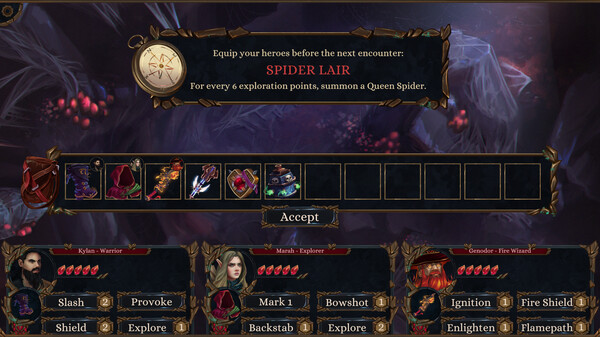 Journey into the unknown with Underworld Explorers, a bite-sized roguelike with card and dice mechanics, where you will fight powerful monsters, level up your heroes, find artifacts and explore deeper until you confront the Underworld Lord!