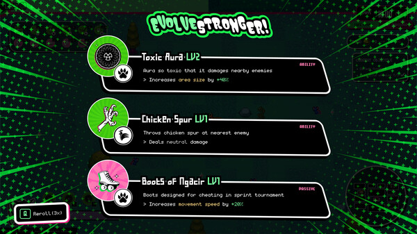 Play as an orange cat in a post-apocalyptic world where you collect Mighty Beasts abilities and challenge the Rat King. Inspired by Vampire Survivors, a game that started the Bullet-heaven genre, Zoomageddon is a unique blend of bullet-heaven and base-building mechanics set in a world teeming with mutant animals. As Oyen the cat, uncover the mysteries of Zoomageddon, unlock various buildings, and discover new quirky powers.