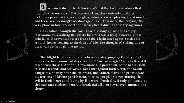 Fully original soundtrack, featuring medieval folk music, sombre ambient, orchestral compositions, and everything in between. Every scene is scored uniquely;