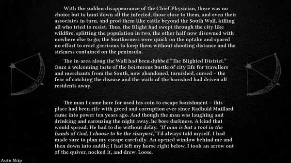 How far would you be willing to go in service to your people? Would you be willing to kill? You would get no gratitude. No riches. The very people you're trying to help would hate you, fear you, and brand you as but a coin-chasing cutthroat. With the City Watch after you, you would get no respite. No peace. Amidst a Biblical calamity, do you have what it takes to answer God's calling and do what no one else would?