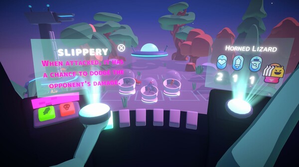 In Mokete, you'll take on the role of the courageous alien protagonist in a world filled with wonders and challenges on Earth. This turn-based roguelike-style game will lead you into an exciting tournament on our very own planet, where aliens use abducted animals as their battle companions in spectacular battles.