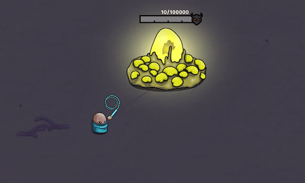 Use your whip to protect the egg! Whip the enemies to defeat them. If there are too many, you can even whip the egg to spawn soldiers. But be careful, because there's a boss in the egg, and every damage shortens the hatching time. When it hatches, you'll need to defeat the boss