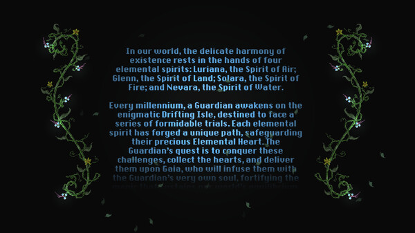 The game has The Guardian Shift is a whimsical adventure where a young guardian, awakened from slumber, faces a series of perilous trials to fulfill their destiny of safeguarding the planet. Despite the daunting challenges, the guardian must rise to the occasion and protect the world. Go forth, Guardian.