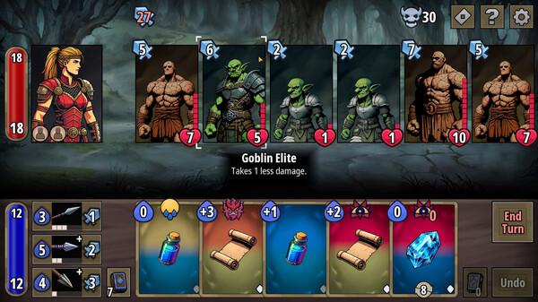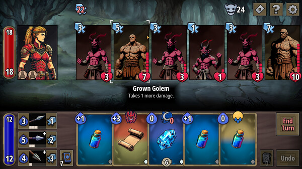 Roguelike Deckbuilder inspired by Action RPGs. Build a powerful deck to support abilities of your hero. Use abilities to puzzle through hordes of enemies.