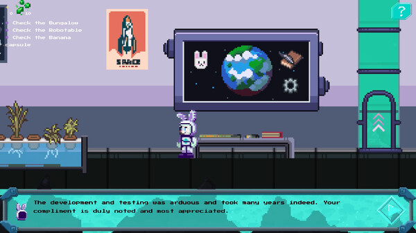 In the "Bunny Space Odyssey: FlopHop" Demo, journey with Ponchee the bunny as she awakens on the mysterious planet FlopHop. With no memory of her past, she must rely on her spacesuit Usagi-01. Solve puzzles, explore pixel art landscapes, and begin to unravel the mysteries of her forgotten history.