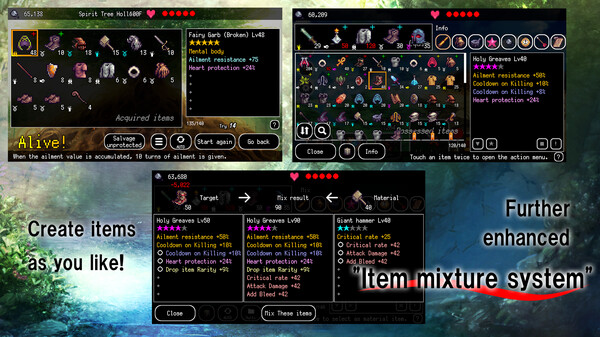 - Create play data.- Choose a dungeon and a target floor and start your adventure!